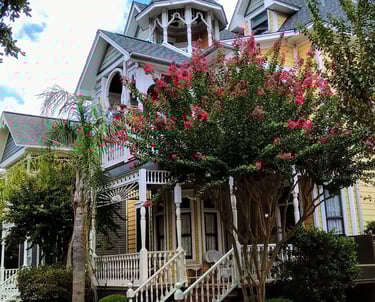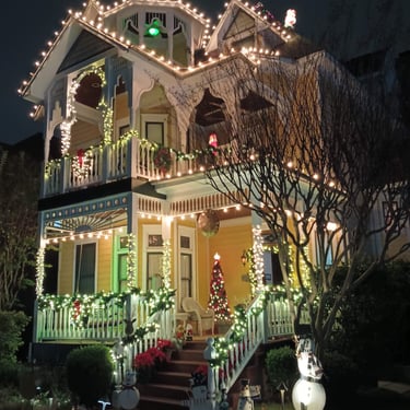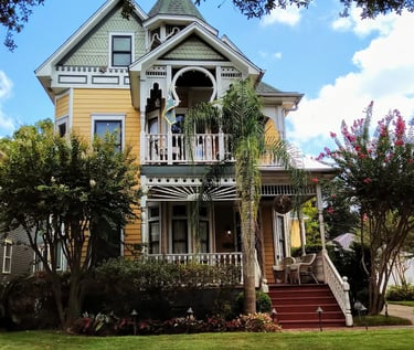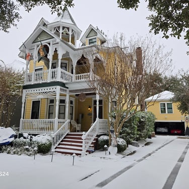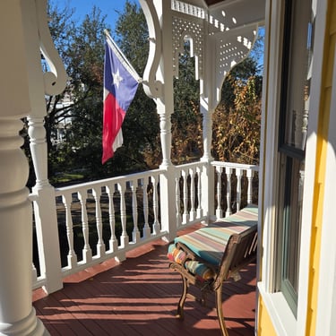 The “Happy House” at 619 E. 7 ½ Street was built for Alan & Tricia Ratliff, the current owners, in 1995 by Steve Watters, a visionary Houston architect with a passion for Victorian architecture. The home is Queen Anne Victorian house in the Historic Houston Heights built on a pier and beam foundation and is based on a George Franklin Barber architectural plan sold in the Sears & Roebuck catalog near the turn of the 20th century. The home faces Mosby Circle and the southside of E. 7 ½ street which contain nine Watters Victorian homes, is bounded on either side by three additional Watters Victorian homes and backs up to five Watters Victorian cottages on 8th Street.